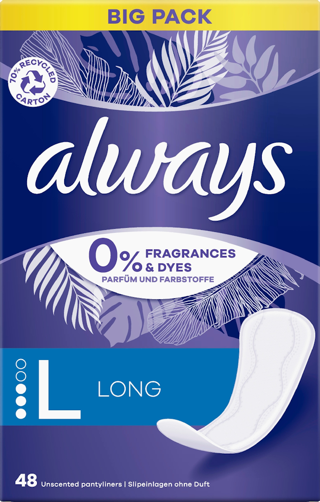 Popis : Always Intimky Long, je vaším ideálním společníkem pro pohodlnost a jistotu každý den. Tato balení obsahují 48 kusů jemných a pohodlných intimních vložek, které jsou navrženy speciálně pro ženy, aby poskytovaly maximální ochranu a komfort během menstruace nebo při slabém močení. Always Intimky Long jsou vyrobeny z měkkého a šetrného materiálu, který se dokonale přizpůsobuje tvaru vašeho těla, což zajišťuje bezpečné a pevné uchycení.