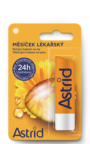 ASTRID MĚŠÍČEK LÉKAŘSKÝ Pečující balzám na rty je obohacený měsíčkem lékařským, který je známý sývmi zjemňujícími a léčivými účinky na vysušené rty. Ricinový olej ve složení je bohatý na esenciální mastné kyseliny, minerály a vitamíny a působí jako přirozený zvlhčovač, který rtům dodává hedvábnou texturu a hydrataci.