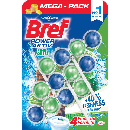 Popis : Díky svému jedinečnému Bref složení se 4 funkcemi, Bref Power aktiv zabraňuje usazování vodního kamene, vytváří účinnou čisticí pěnu, zabraňuje usazování nečistot a dodává vaší toaletě extra svěžest. Jednoduše umístěte produkt pod okraj záchodové mísy, nastavte jej na proud vody a ucítíte svěžest a čistotu vaší toalety s každým spláchnutím! Vydrží až 250 spláchnutí.