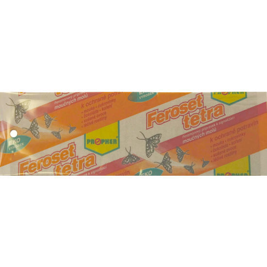 Popis :Feromonový prostředek k signalizaci a odchytu synantropních zavíječů Pyralidae (tzv. mouční moli). Je účinný na zavíječe skladištního, moučného, paprikového a datlového. Kartónový proužek o velikosti 60 × 200 mm opatřený otvorem k zavěšení, jednostranně pokrytý vrstvou nevysychavého lepidla s obsahem sexuálního feromonu. Lepová vrstva je kryta silikonovaným papírem. Každý proužek je zabalen v polypropylenovém obalu.