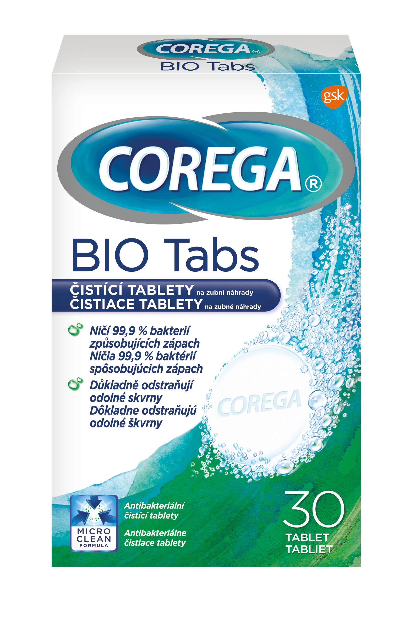 Corega Antibakteriální čistící tablety 30 ks