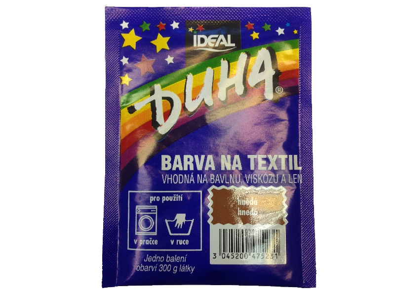 Popis : Barva na textil vhodná na bavlnu, viskózu a len. Pro použití v pračce či v ruce. Jedno balení obarví 300 g látky.