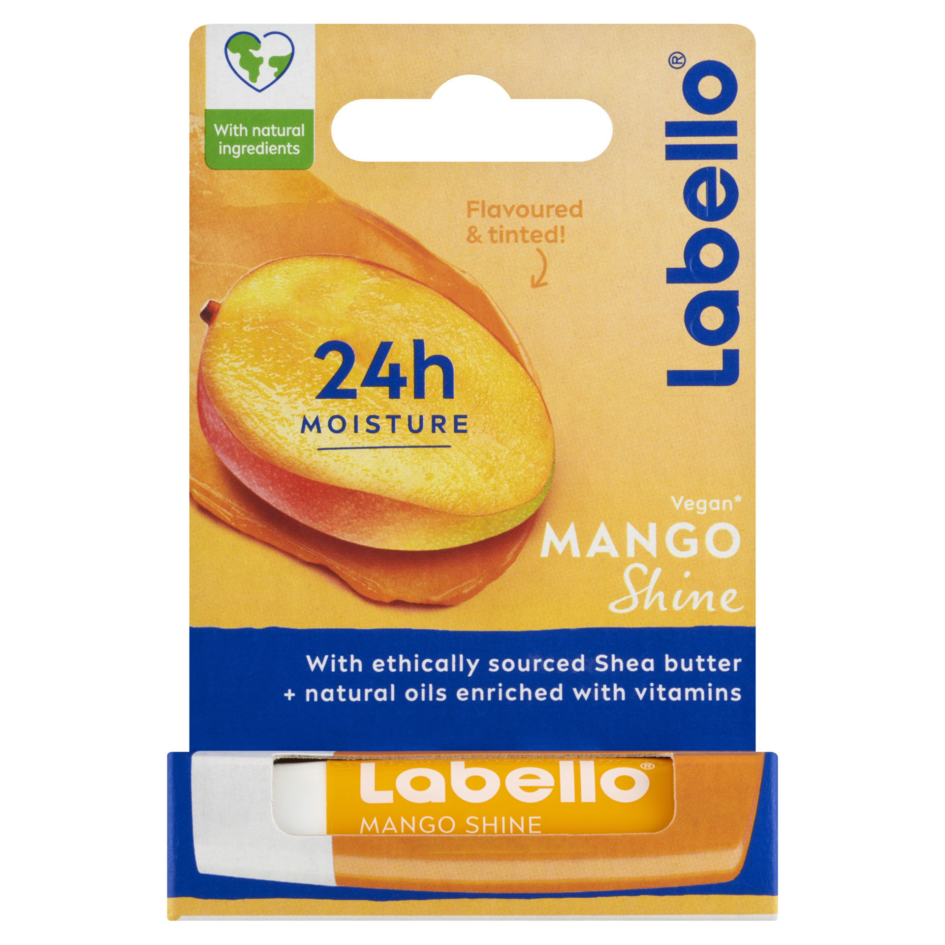 Popis : Labello® Tónovací balzám na rty Mango Shine s eticky získaným bambuckým máslem ** a delikátním mangovým aroma dodá rtům jemný lesk a chrání je před chladem, větrem a suchým vzduchem. Usilujeme o svět bez testování na zvířatech.***