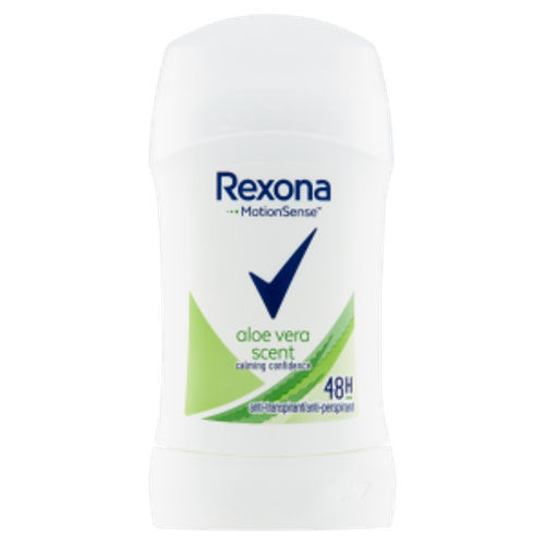 Obsahuje také inovativní patentovanou technologii MotionsenseTM založenou na přítomnosti mikrokapslí, jež obsahují vůni a díky tření při pohybu postupně praskají. Dochází tak k pozvolnému uvolňování parfemace podle fyzické aktivity. Platí zde úměra, že čím více se člověk pohybuje, tím intenzivněji antiperspirant voní. Rexona Aloe Vera je charakteristická svěží vůní právě této rostliny, která navozuje pocit klidu a ochlazení. Rexona tuhý antiperspirant Aloe Vera je naší spolehlivou ochranou proti pocení a zápachu pro citlivou pokožku. Rexona. Nezradí tě!