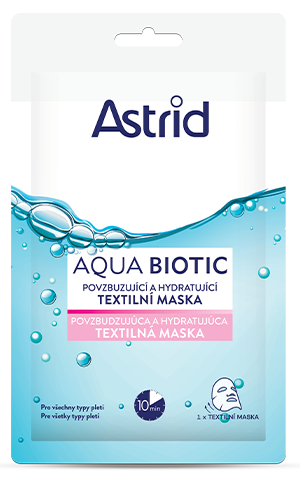 Astrid AQUA BIOTIC Povzbuzující a hydratující textilní maska zklidňuje suchou a dehydrovanou pleť