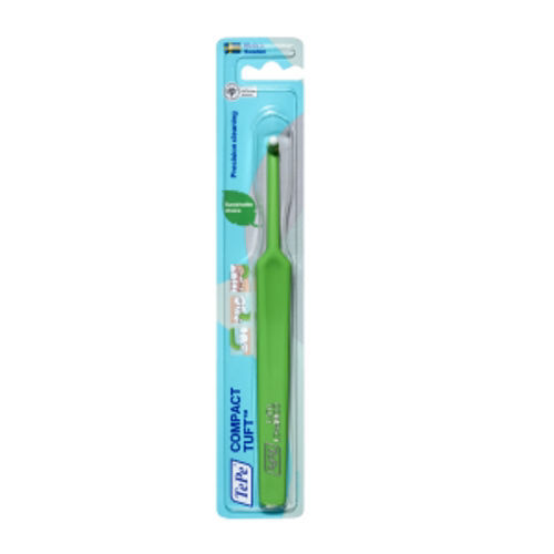 Popis : TePe Compact Tuft je jednosvazkový zubní kartáček určený k čištění těžko přístupných míst v ústech. Tento specializovaný kartáček je vybaven kopulovitým chomáčkem, který umožňuje cílené čištění úzkých prostor a podél linie dásní.