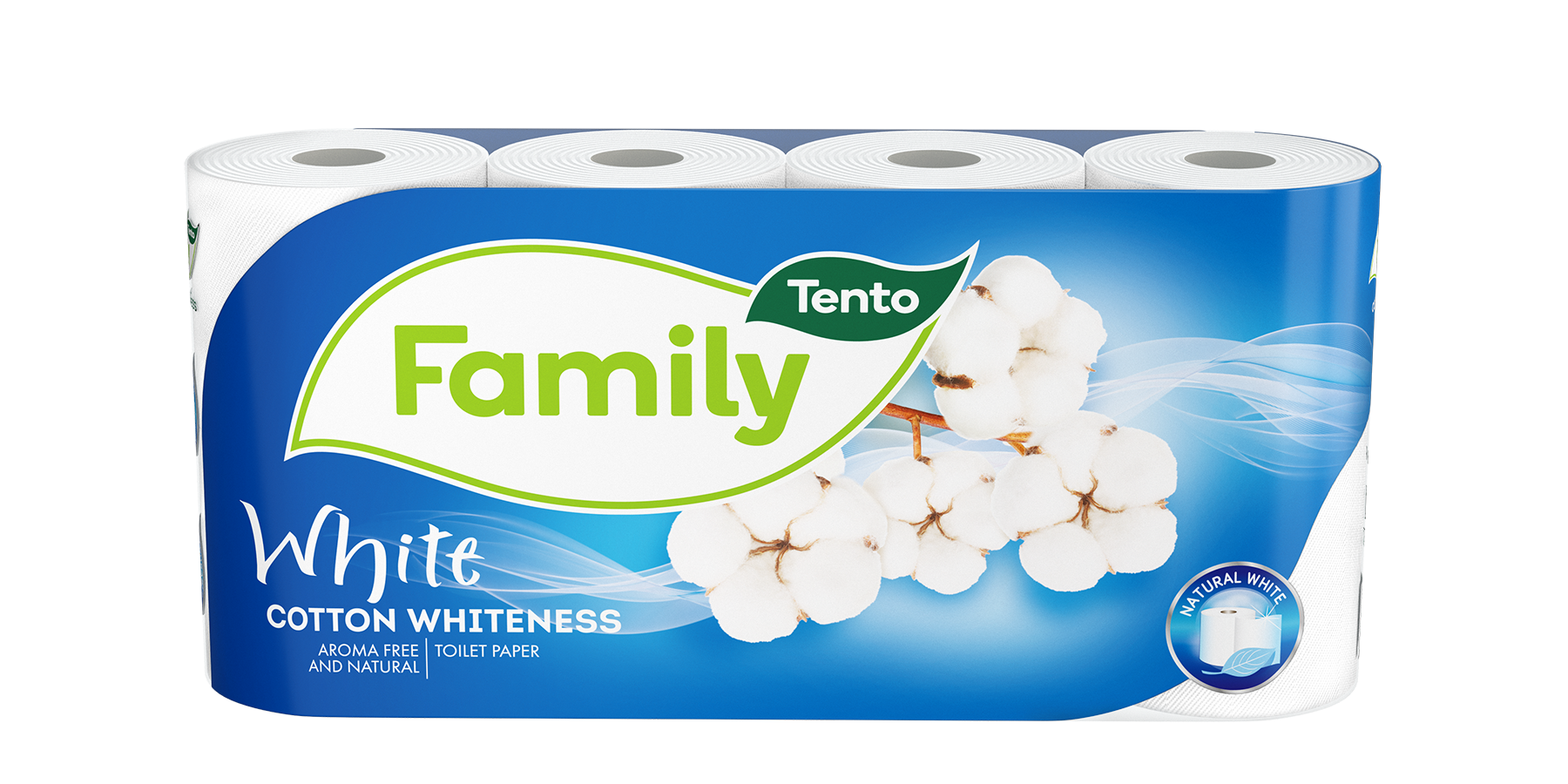 Tento Family Cotton Whiteness je přirozeně bílý toaletní papír bez parfemace. Skládá se ze dvou pevných vrstev a představuje ekonomicky výhodnou volbu.